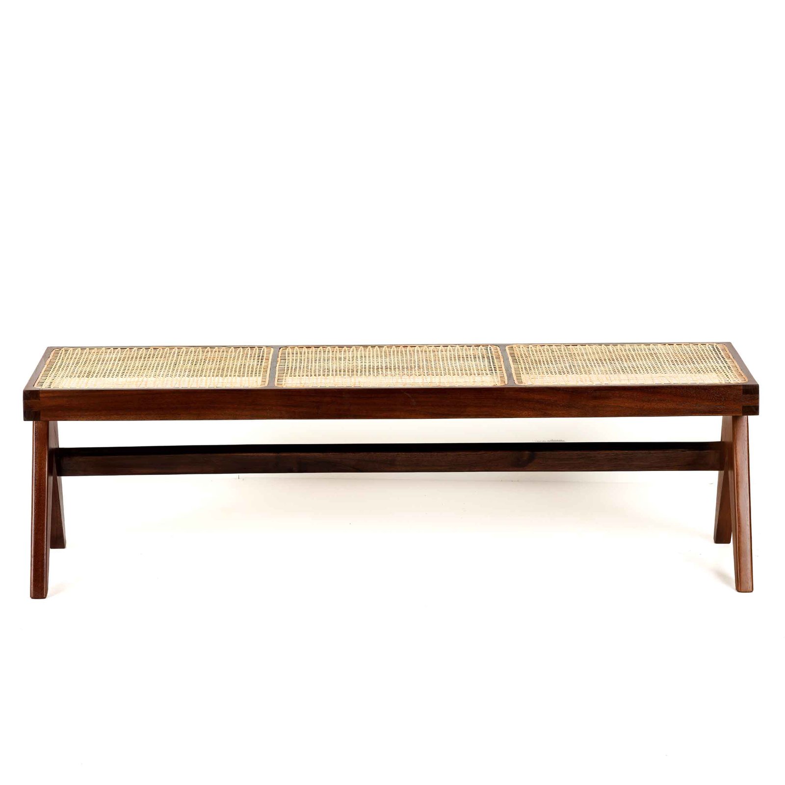 Pierre Jeanneret’s Bench was designed for Private residences in Chandigarh. This is a 3-seat bench with V-legs and supported by a teakwood bar.  A handmade re-edition of a chair made in solid teak by skilled carpenters and cane weavers. The Teak and Cane bench is ideal for a hallway entrance, Dining Table, at the front of the Bed, etc. We love this combination of a strong wood frame filled with thin caning. These contrasts make this object so unique. Each chair looks a bit different, and that makes every chair a unique piece. – Some are thinner, lower, wider, darker, with wider or more dense caning.
