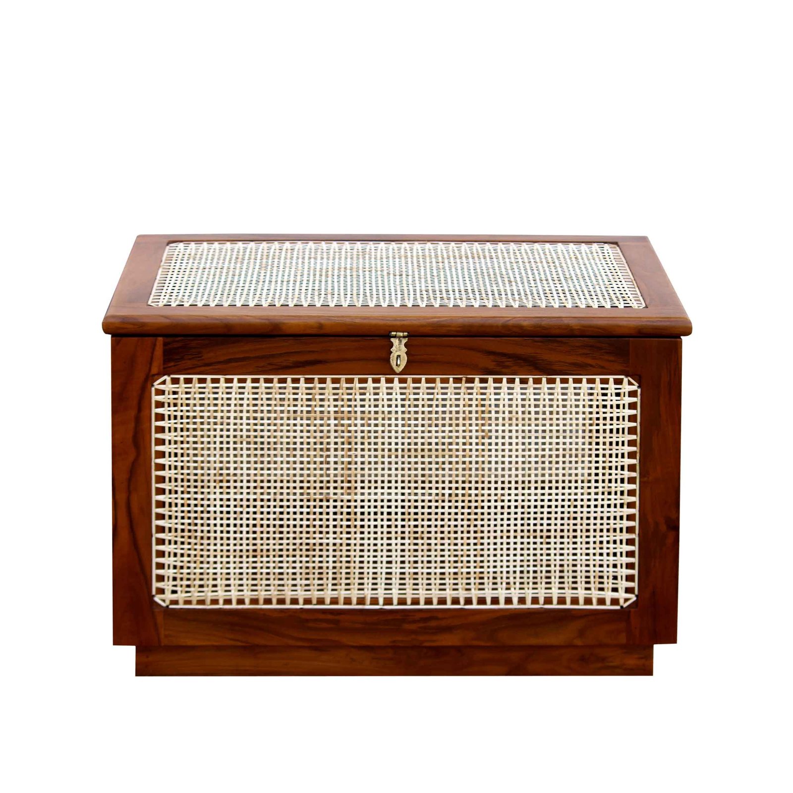Pierre Jeanneret Caned Linen Box designed for Residences in Chandigarh. This is designed as a clothing chest. Its combination of wood frame and thin canning makes a unique object. Suitable for bedrooms, Living rooms, etc.
