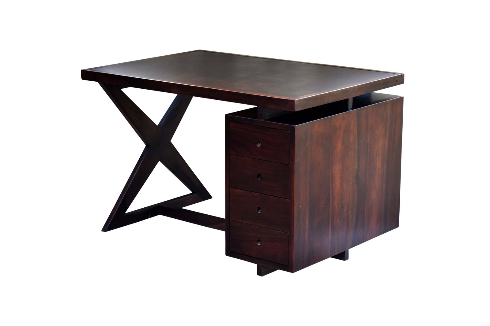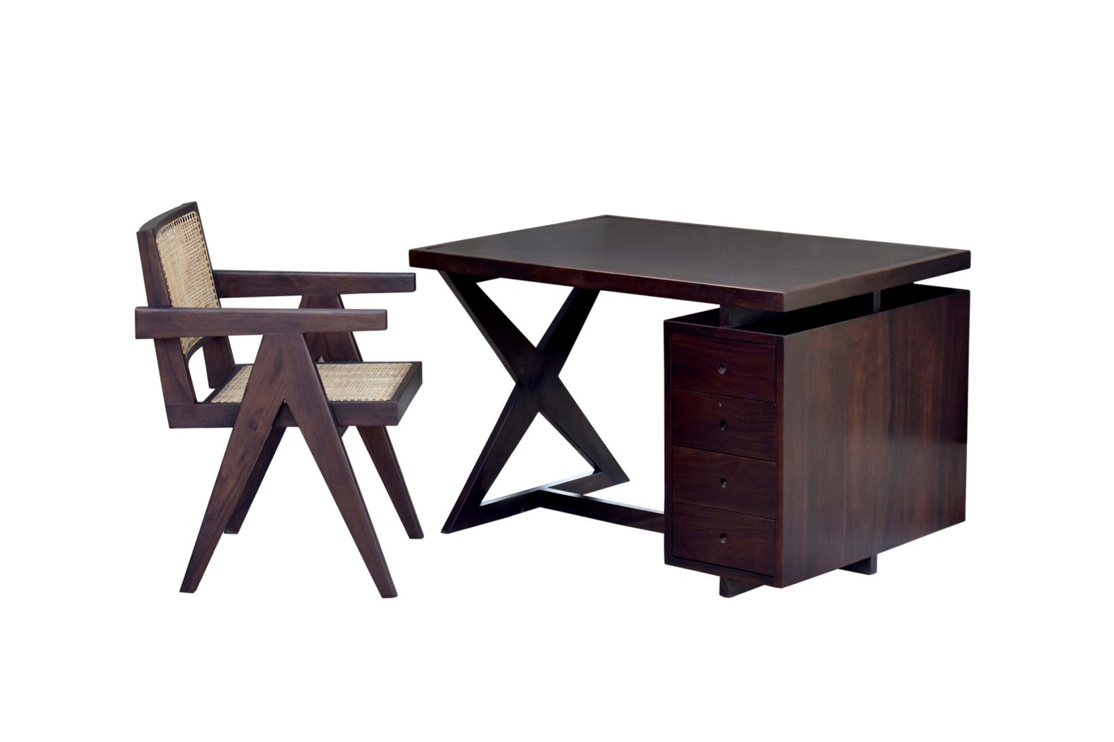 Pierre Jeanneret Desk for Private / Administrative Buildings in Chandigarh. This Desk has front storage,1 door, and drawers another side. The top is made of leather. We have Leather options: Brown, Black, and Natural. A handmade re-edition of Desk made in solid teak by skilled carpenters. Suitable for Home office, Living Room, bedroom, office, etc.